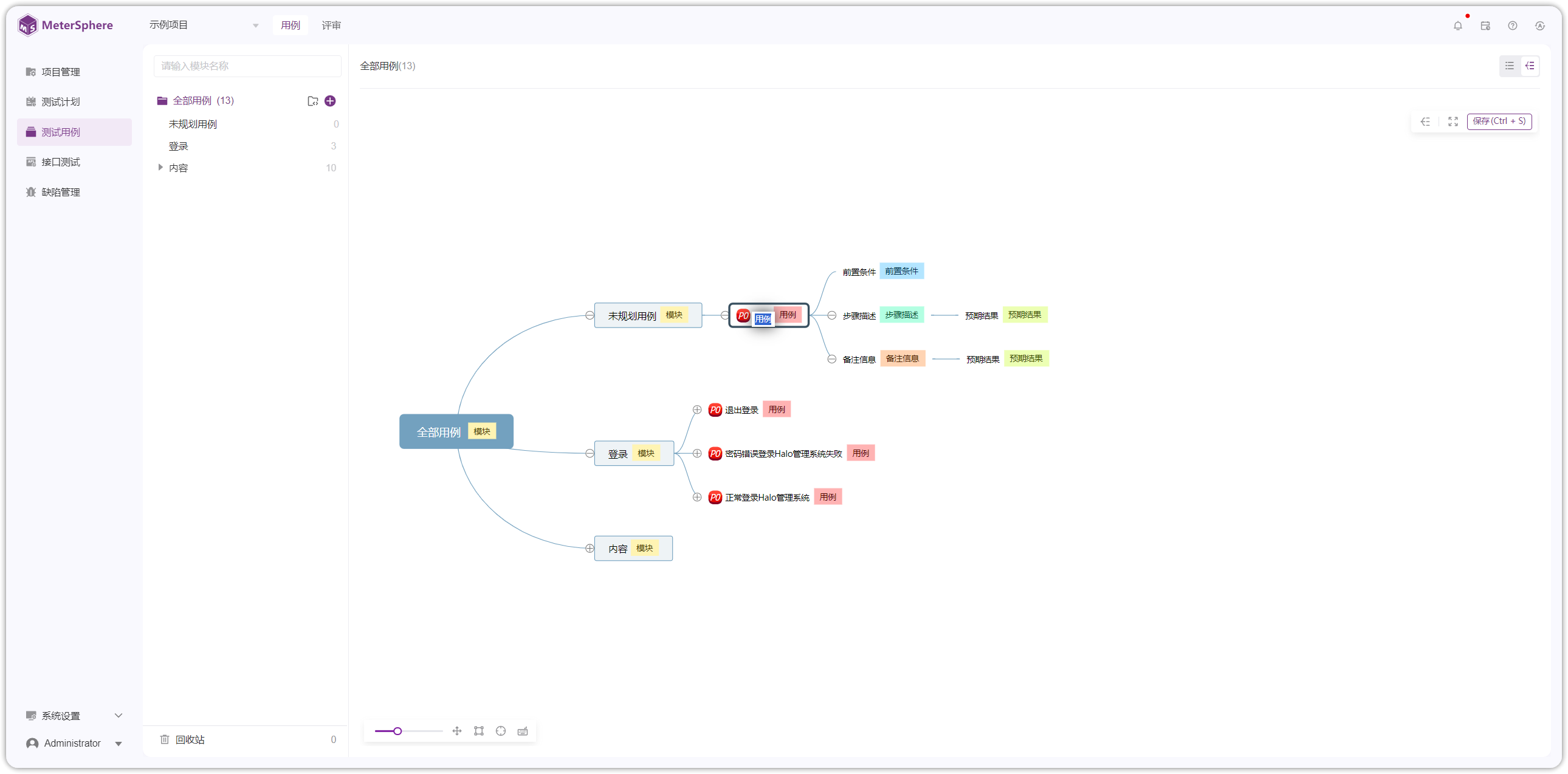 其中,测试用例模块支持在线表单、脑图方式创建测试用例,可以关联接口用例、场景用例;支持导入、导出 Excel、Xmind 两种文件格式。用例评审支持在线创建评审计划,关联测试用例,多人在线评审用例。