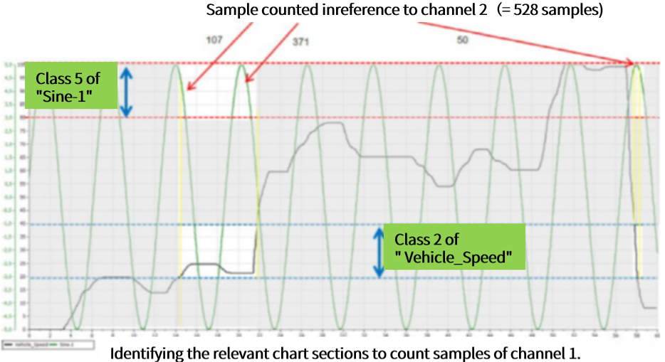 ■ **"Vehicle_Speed"类别2和"Sine-1"类别5中重叠的部分如图中白色区域所示。**仍仅对采样率较高的"Sine-1"重叠部分进行计数。