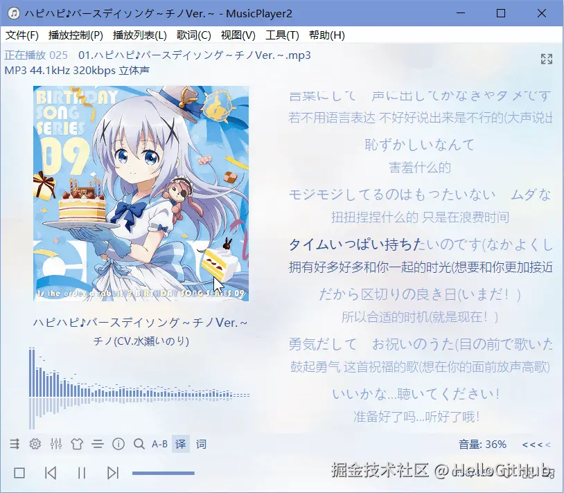 3、MusicPlayer2:多功能的 Windows 音乐播放器。该项目是一款由 C++ 编写的简约、小巧、多功能的 Windows 本地音乐播放器,支持常见音频格式,并提供歌词显示、卡拉 OK 模式、歌词编辑、专辑封面展示、频谱分析和音效调节等功能。
