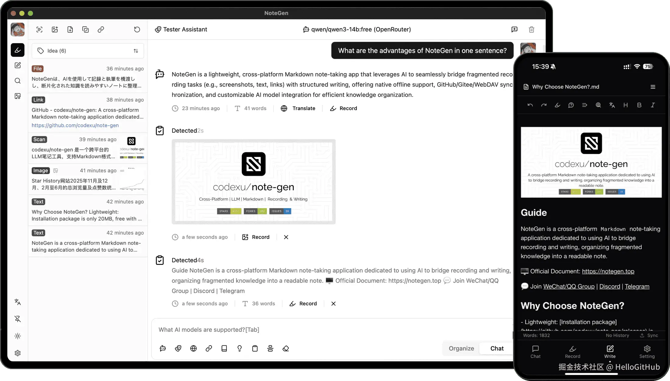 29、note-gen:基于 AI 的 Markdown 笔记应用。这是一款跨平台的 Markdown 笔记应用,专注于用 AI 搭建"记录-写作"的桥梁。它不仅支持截图、文本、插图等多种记录方式,还能通过 AI 模型将这些碎片化内容整理成可读的笔记。