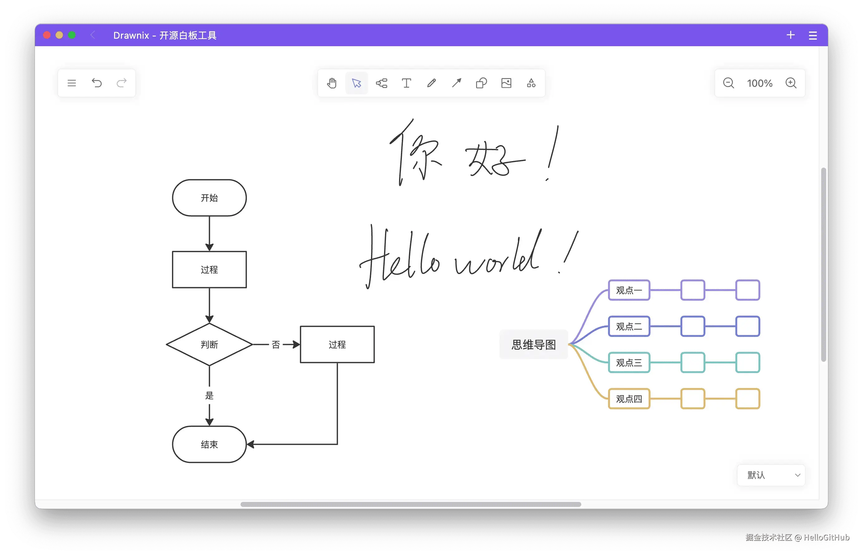14、drawnix:极简的在线白板工具。这是一款免费、开源的在线白板工具。它提供一个无限画布,支持自由绘制、思维导图、流程图、画笔、插入图片、自动保存等功能,以及移动端适配、Docker 部署和插件机制等特性。