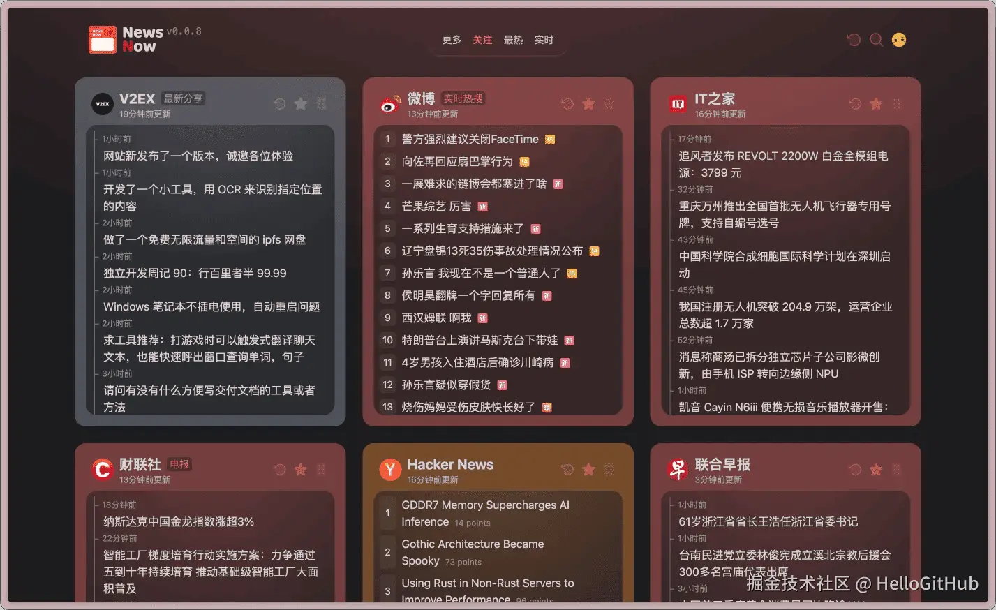 这是一款高颜值的实时新闻与热榜网站,相比传统热榜产品更加注重实时新闻。它前后端完全开源、部署简单,可轻松托管到 Cloudflare Pages 或 Vercel 等平台。