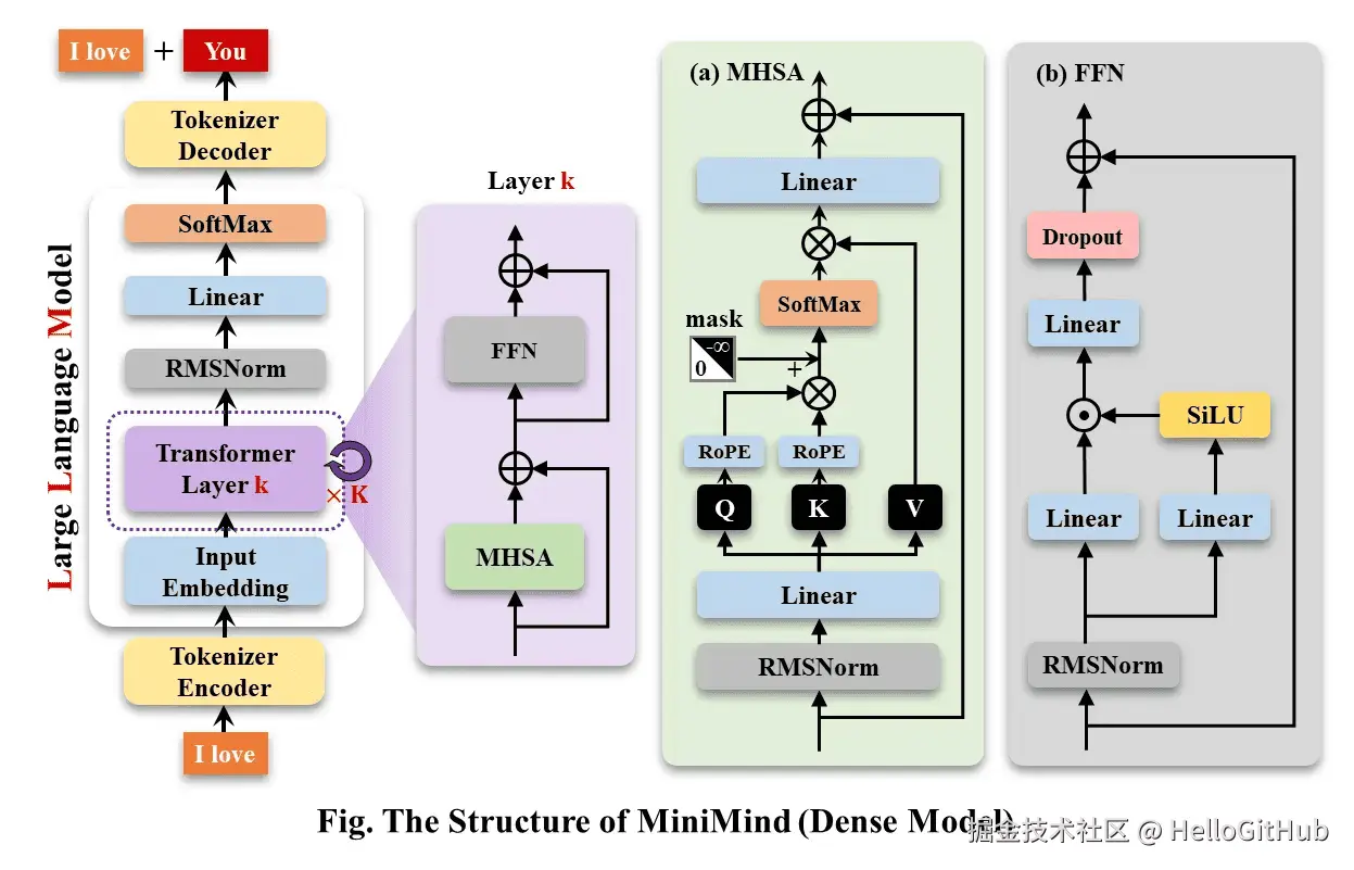 这不仅是一个微型语言模型的实现,更是一份入门 LLM 的教程,旨在降低学习和上手 LLM 的门槛 。它提供了从数据预处理到模型训练、微调和推理的全流程代码和教程。最小模型仅 0.02B 参数,可在普通 GPU 上轻松运行。