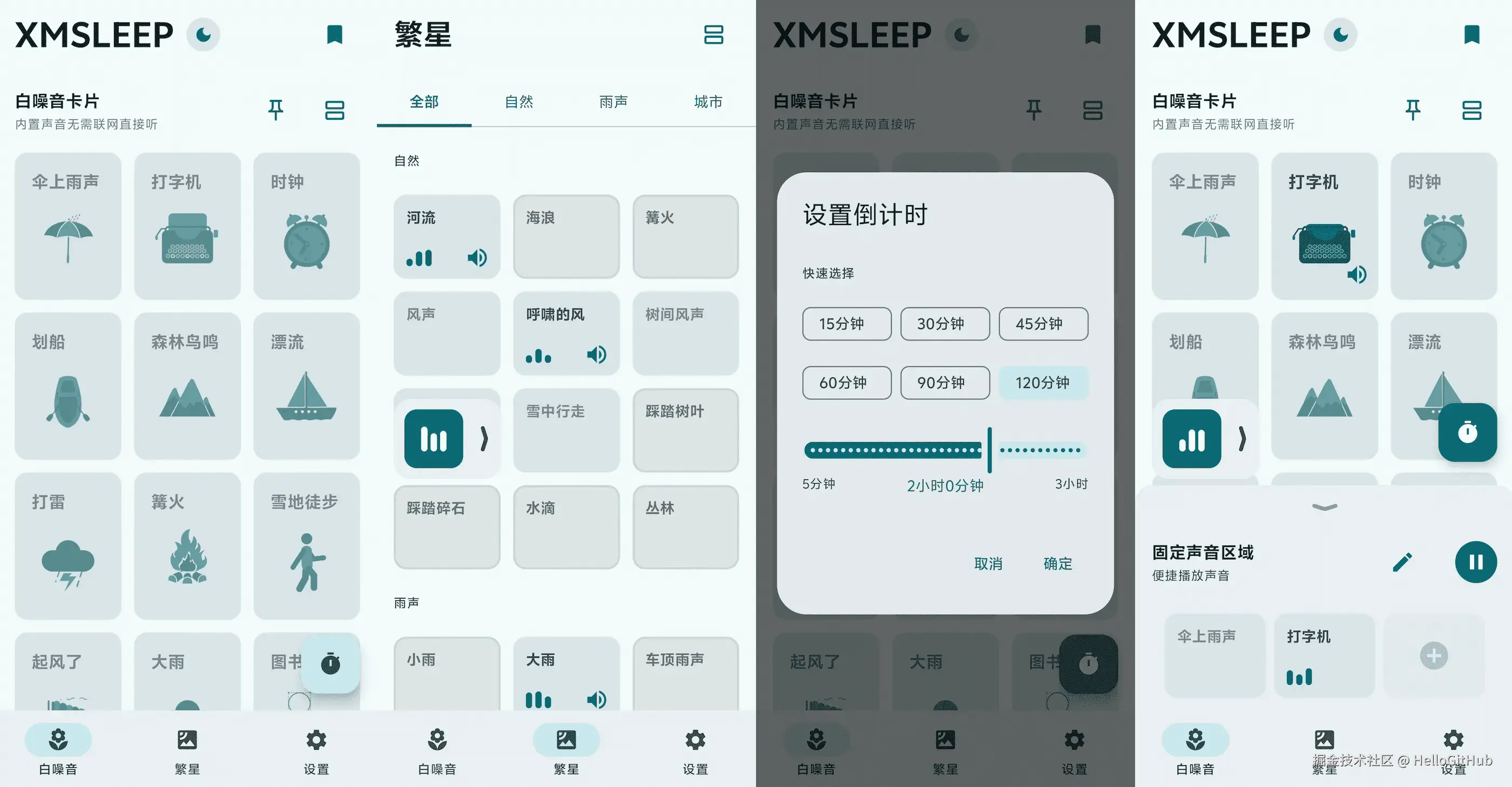 20、XMSLEEP:开源的 Android 白噪音应用。这是一个专注于白噪音播放的 Android 应用,提供雨声、篝火、雷声、猫咪呼噜、鸟鸣、夜虫等多种自然声音,帮助你放松、冥想和入睡。