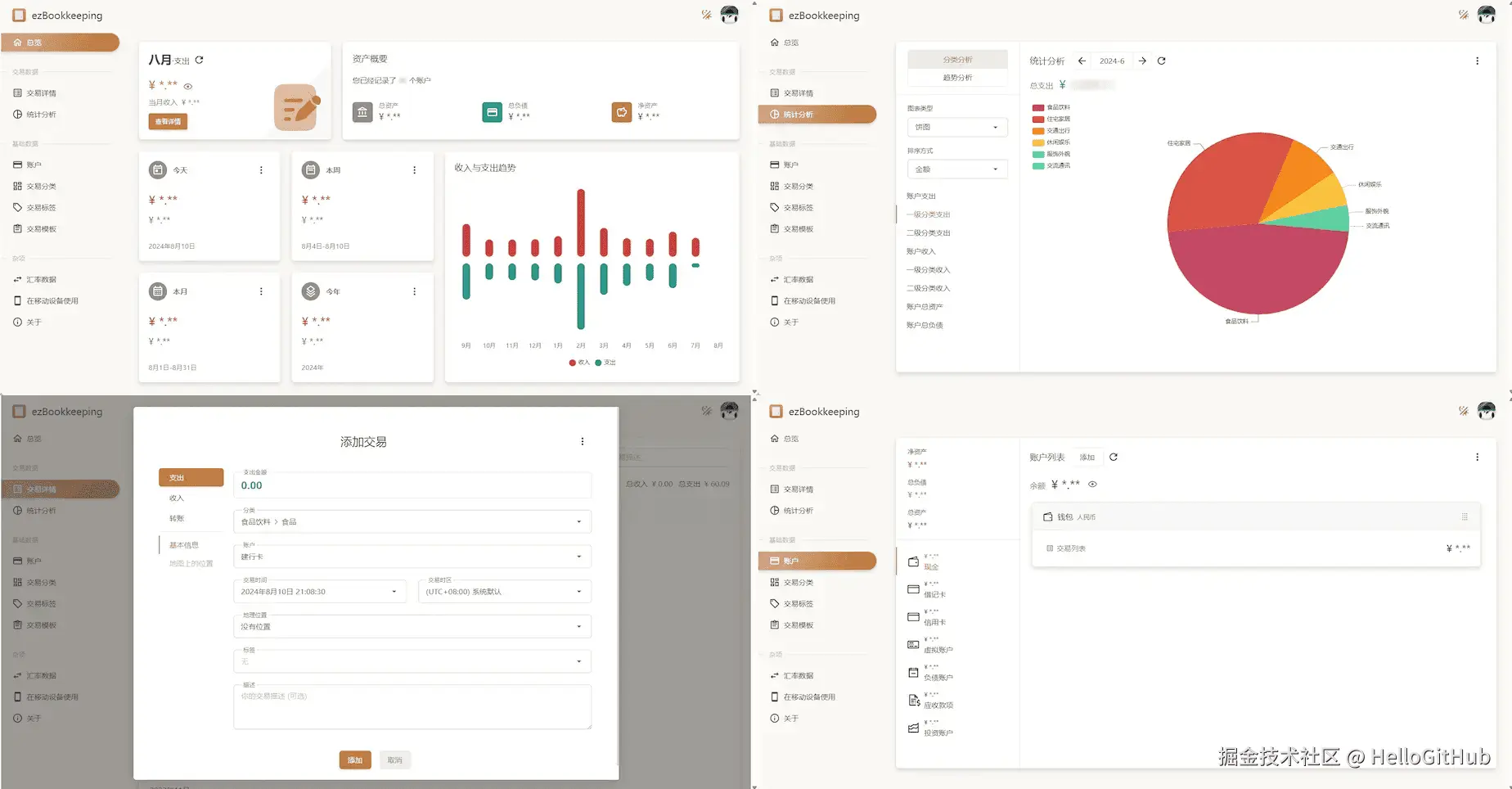 8、ezbookkeeping:轻松自托管你的个人财务数据。这是一款免费、轻量、可自托管的个人记账应用,采用 Go+Vue 构建。它界面简洁易用、功能丰富,支持二级账户(个人/家庭)、收支分类、交易图片附件、定期收支自动记账等功能。借助 PWA 技术,可一键添加到手机主屏幕,体验媲美原生 App。