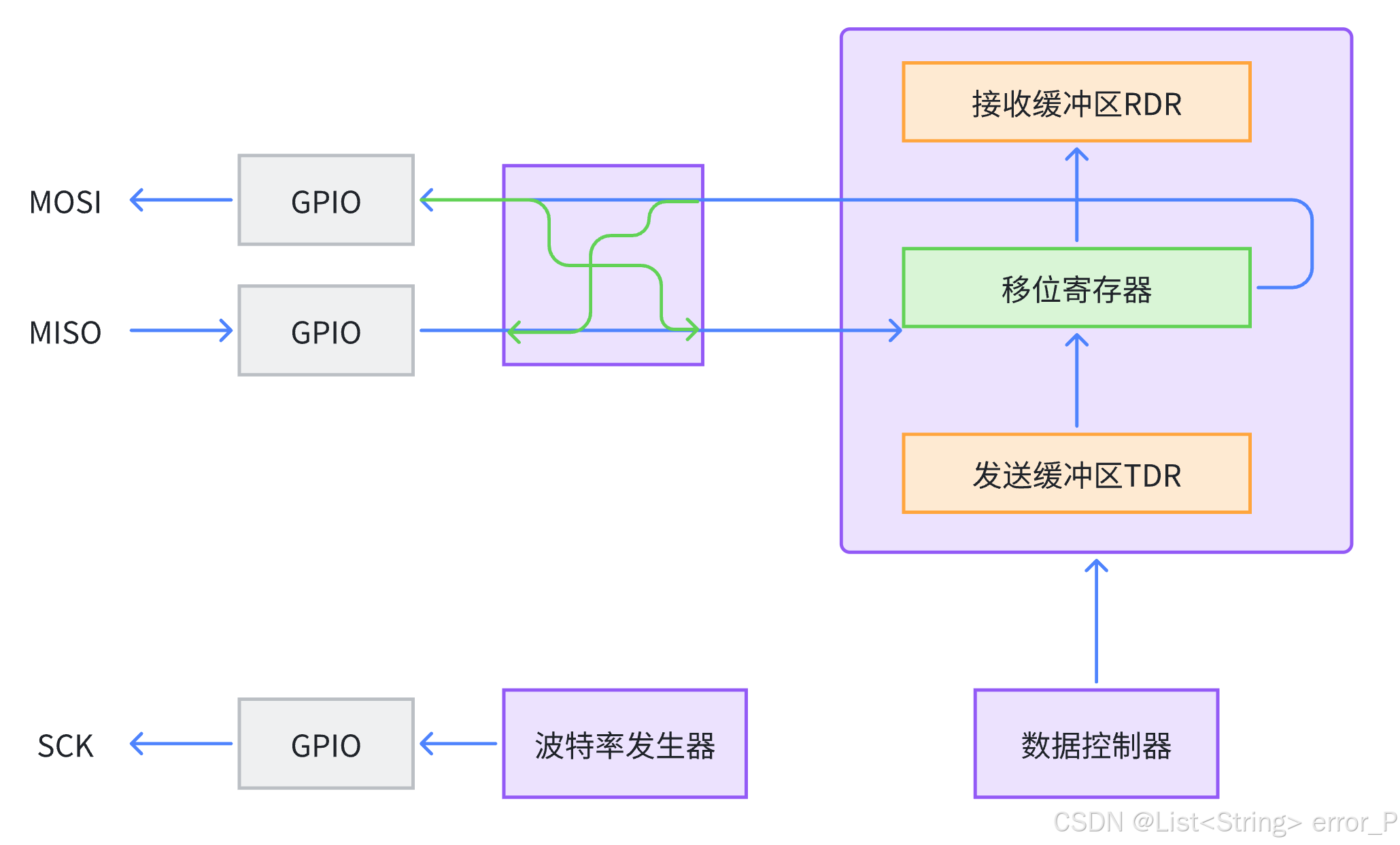 (1) MISO -- Master Input Slave Output ,主设备数据输入,从设备数据输出