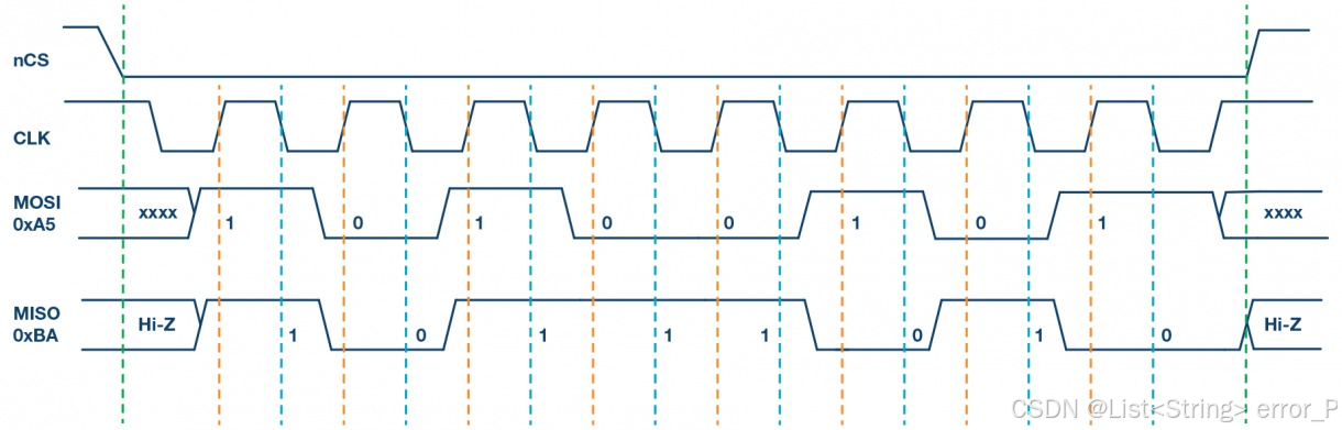数据在SCLK的上升沿被采样(读取),在下降沿切换(输出)。主机和从机在下降沿准备数据,在随后的上升沿锁存数据。