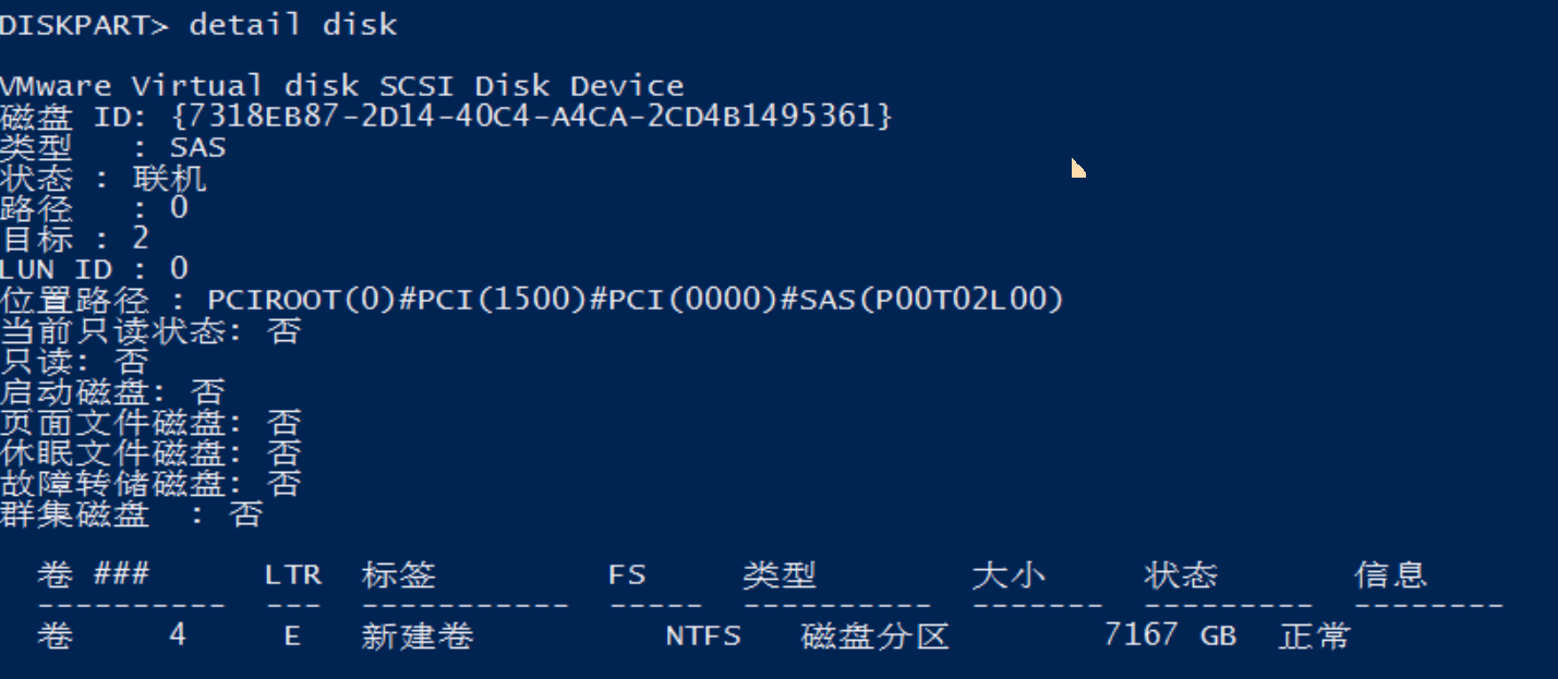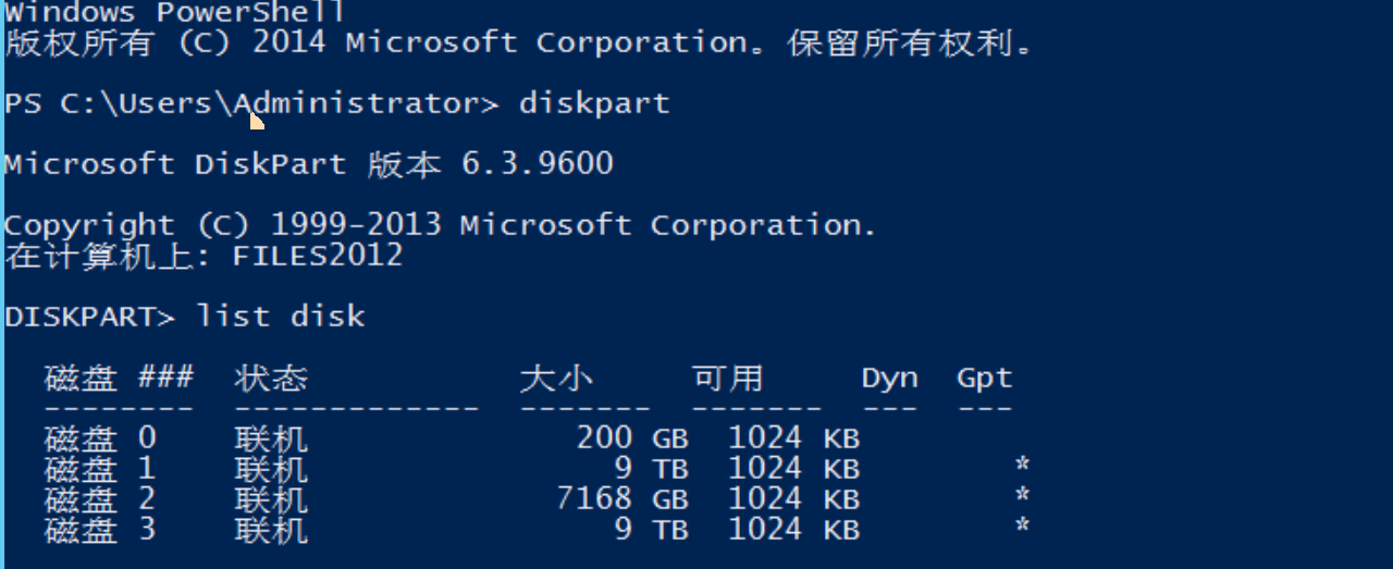 执行list disk 查看所有磁盘