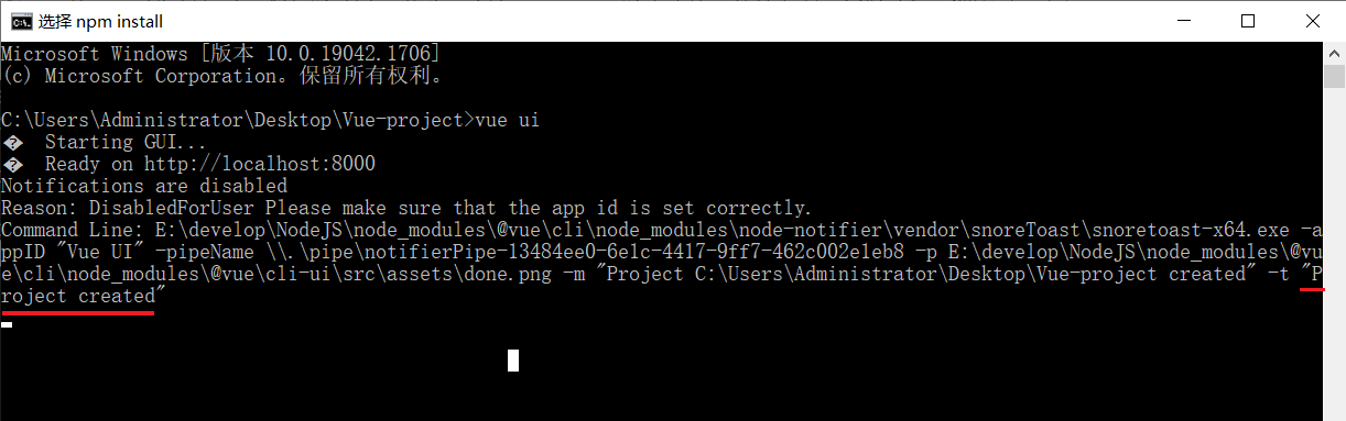 如果出现如下字样,就说明前端工程已经创建完毕了。
