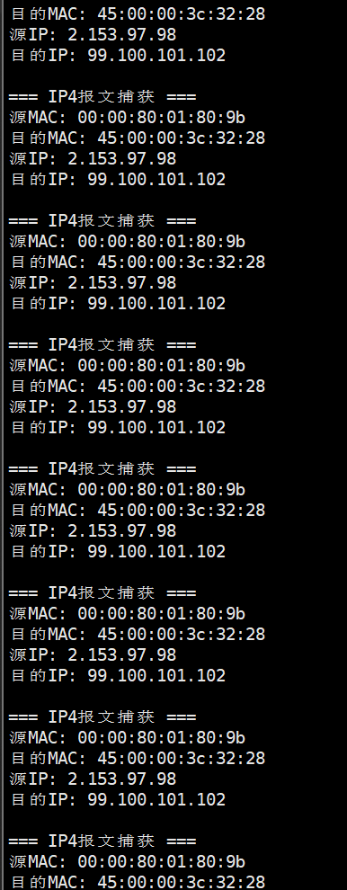 // 解析以太网头和IP4头(极简格式化,避免复杂函数)