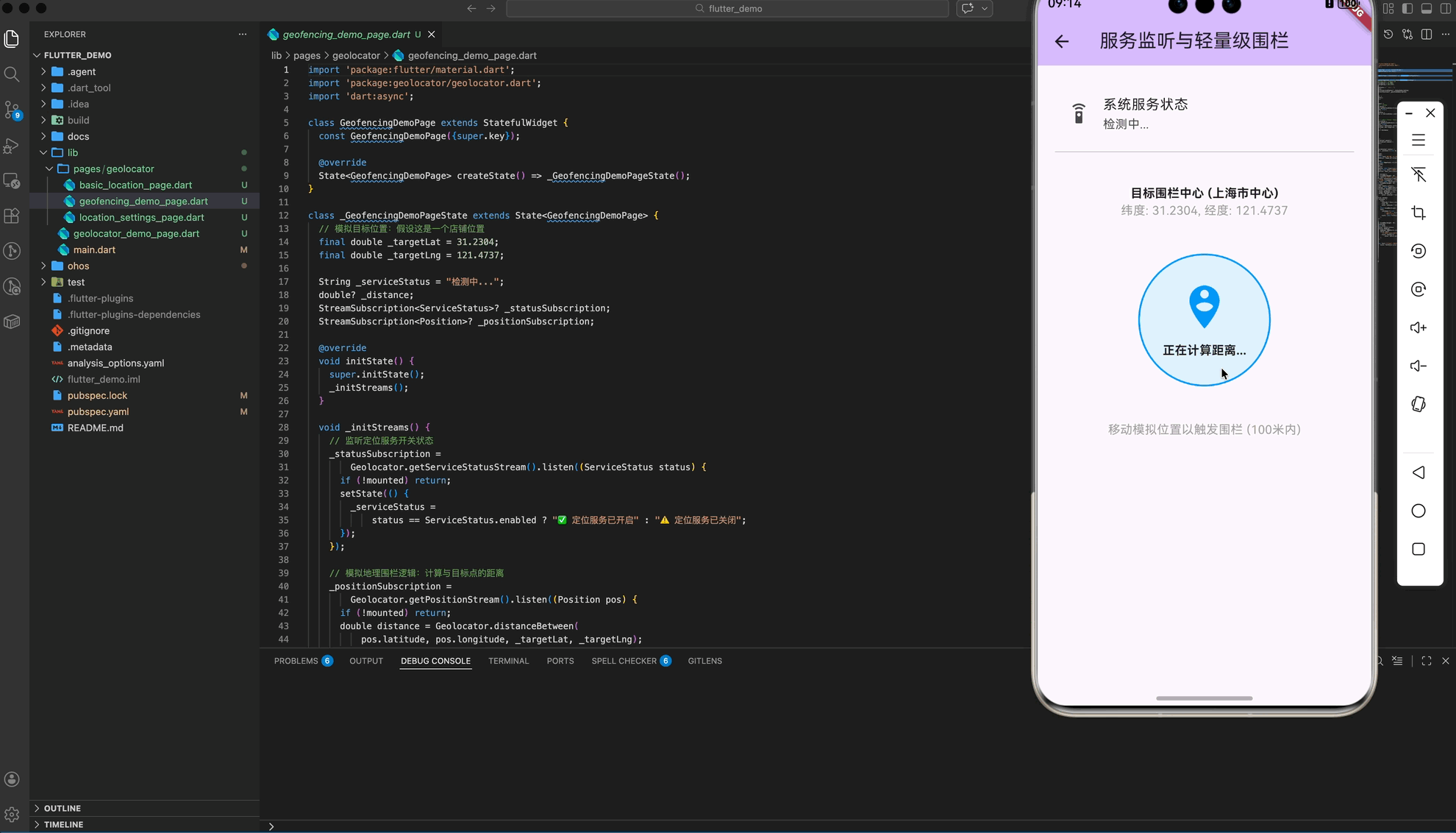 鸿蒙原生 Location Kit 支持硬件级地理围栏,但在 Flutter 侧,我们可以通过 distanceBetween 实现轻量级围栏: