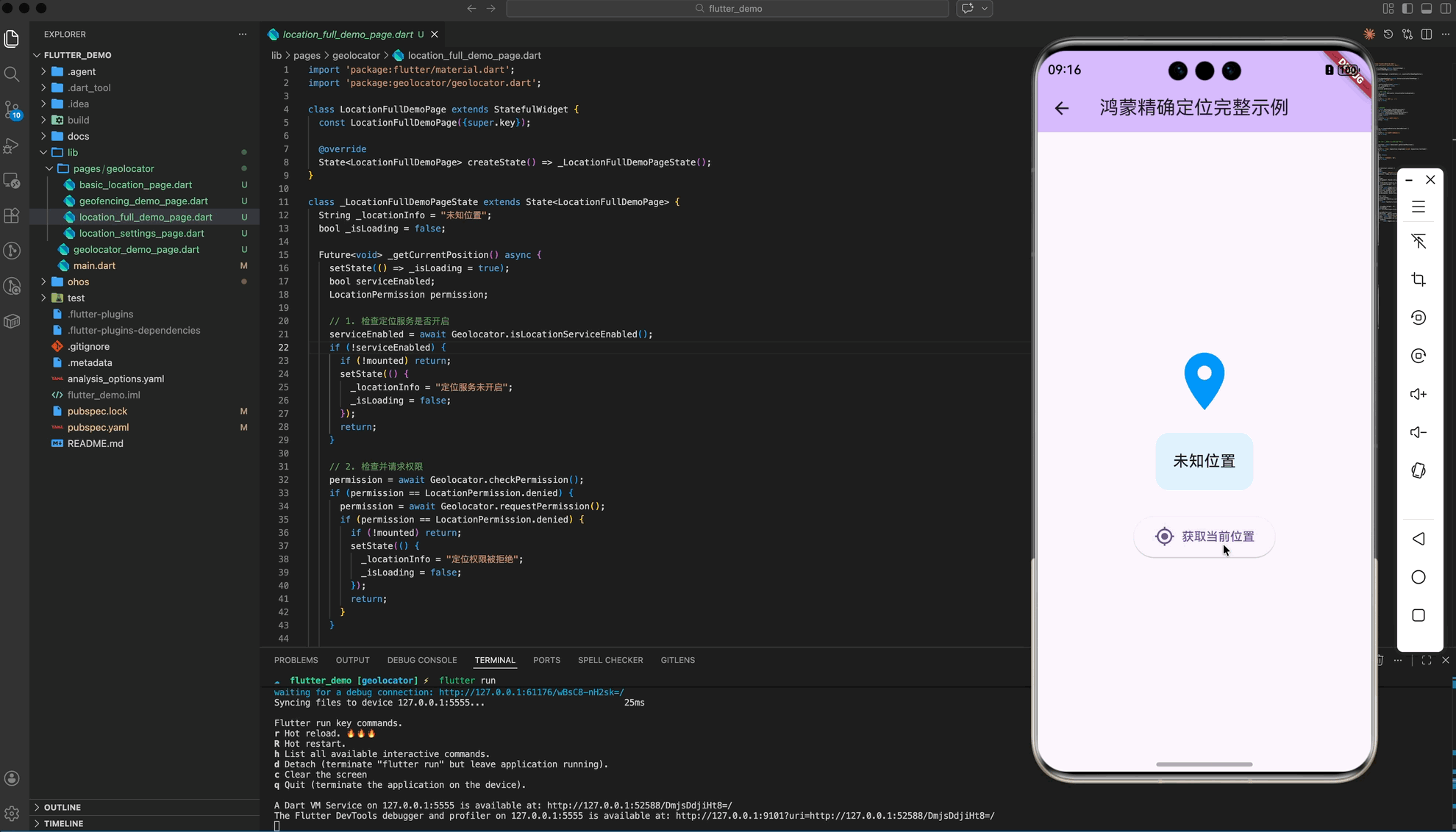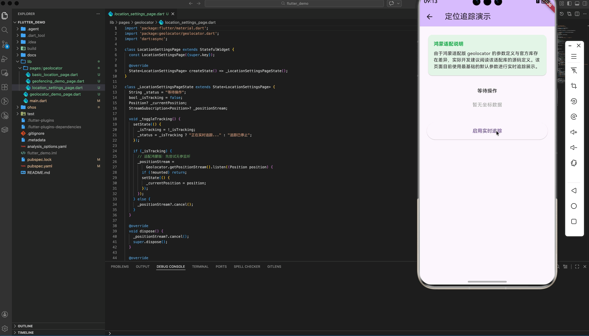 挑战 :在鸿蒙 NEXT 上直接运行官方 geolocator 会提示找不到插件实现。