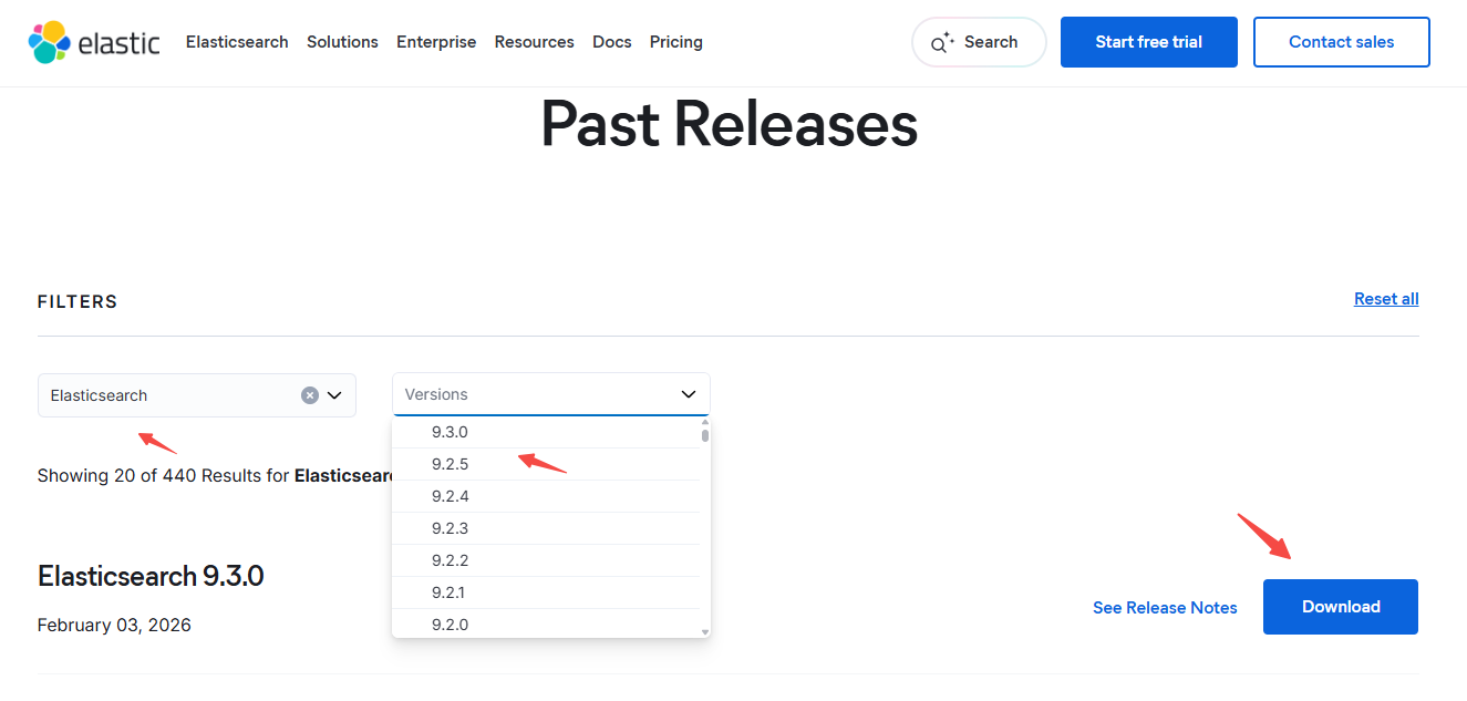 https://www.elastic.co/downloads/past-releases?product=elasticsearch