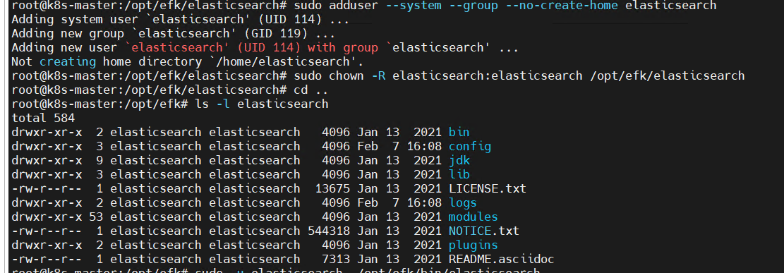 sudo chown -R elasticsearch:elasticsearch /opt/efk/elasticsearch