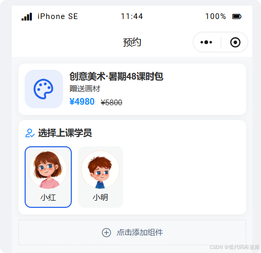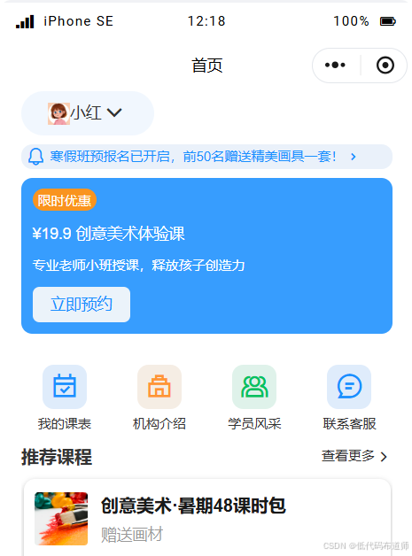 在上一讲中,我们完成了"首页整体装修",通过精美的卡片展示了体验课套餐。当家长被课程吸引并点击"立即预约"时,我们需要一套完整的流程来引导他们完成学员选择、时段确认、在线支付。
