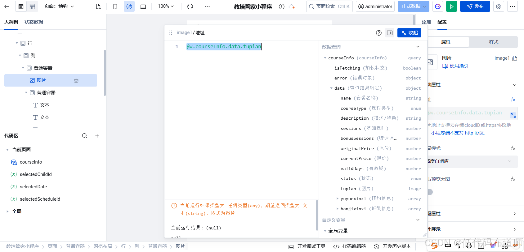 然后给图片绑定字段,从我们的courseInfo里绑定