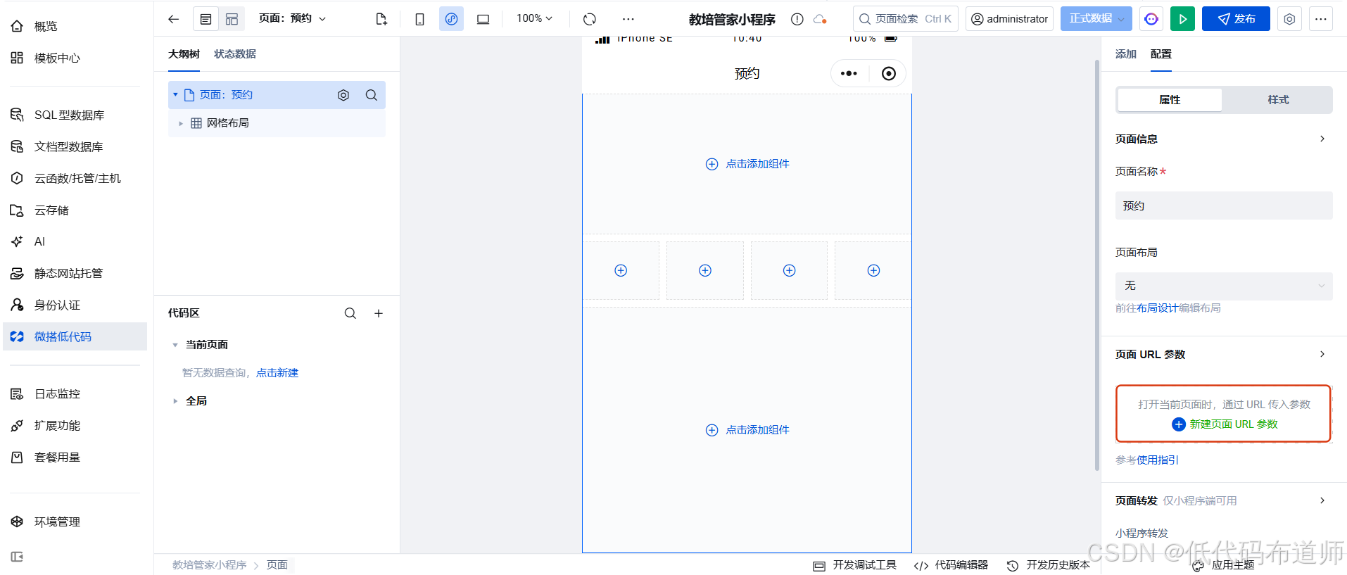 选中页面组件,我们创建一个URL参数,用来接收从首页传递过来的课程ID