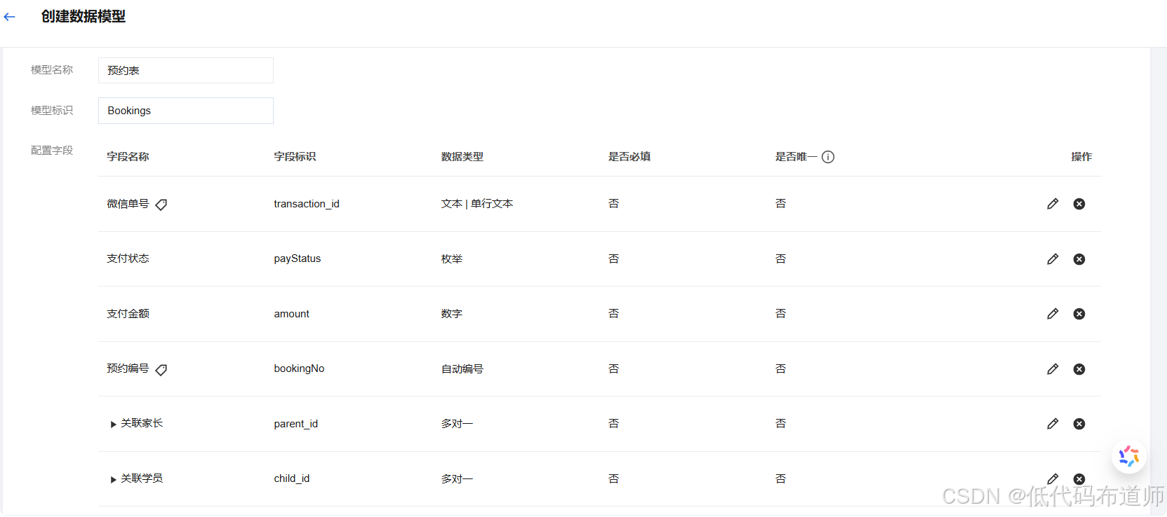 预约表是连接家长、孩子、课程和资金的核心纽带。我们需要记录"谁(家长),给谁(孩子),买了什么课(课包+排课),付了多少钱"。