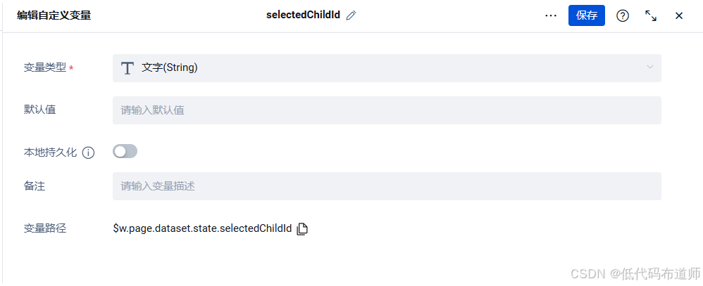 继续创建变量上课学员ID(selectedChildId),用于存储当前选中的上课学员 ID。