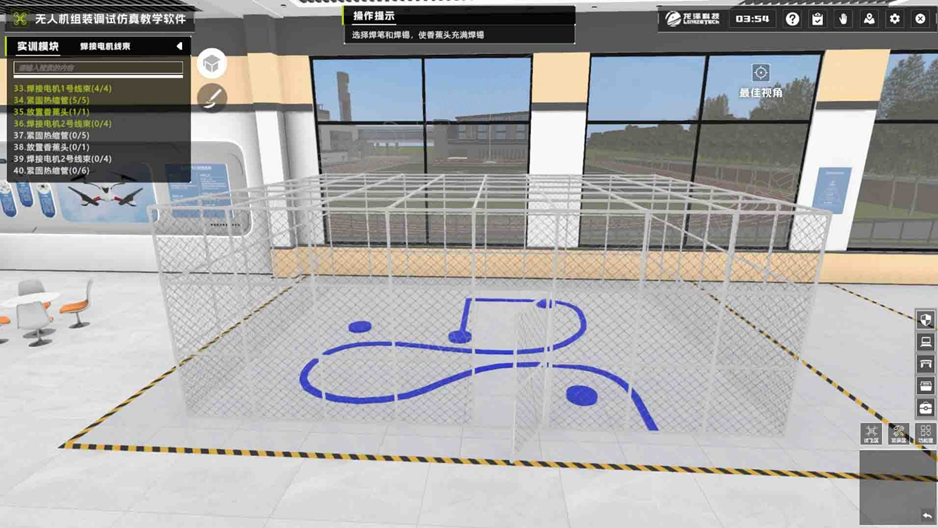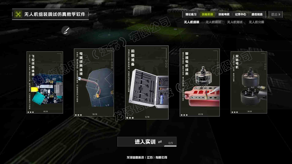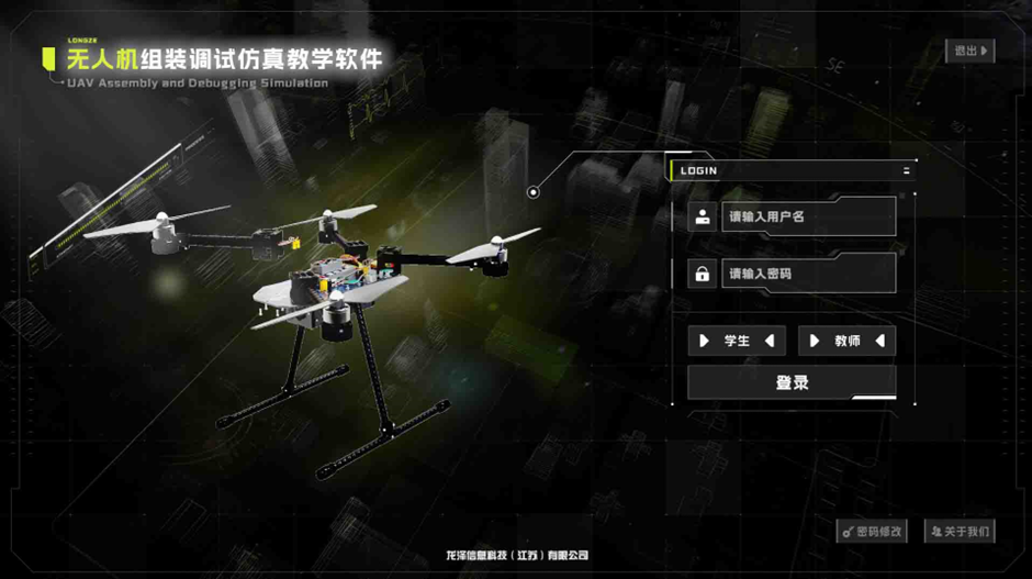 无人机组装调试仿真教学软件利用仿真技术模拟实际的无人机组装和调试过程,主要包括:无人机组装、无人机调试、无人机测试、无人机分解。组装过程中展示各种专用工具的使用过程。学生使用本软件可以熟练掌握无人机的组装和调试过程。教师可实时掌握学生的学习情况,针对性进行教学,提高教学效率。