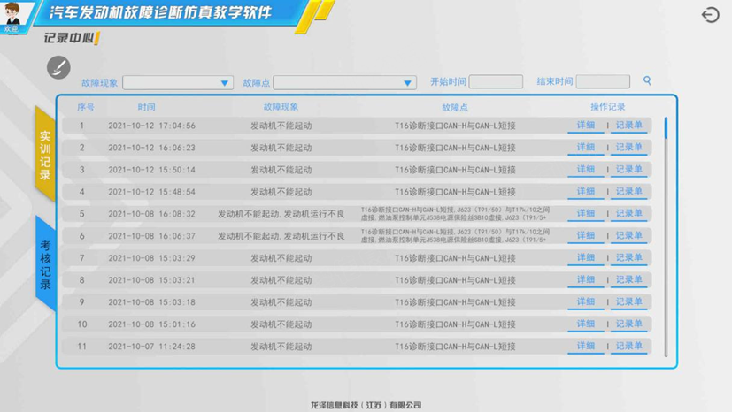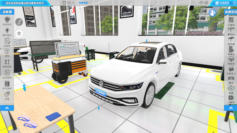 汽车发动机故障诊断仿真教学软件采用仿真技术模拟实际的汽车发动机故障诊断排除过程,完成发动机不能起动、发动机运行不良、ABS故障灯报警、发动机起动困难、仪表故障指示灯点亮等故障现象进行诊断与排除。学生使用本软件可以熟练掌握诊断设备、工具、量具正确使用。教师可实时掌握学生的学习情况,针对性进行教学,提高教学效率。