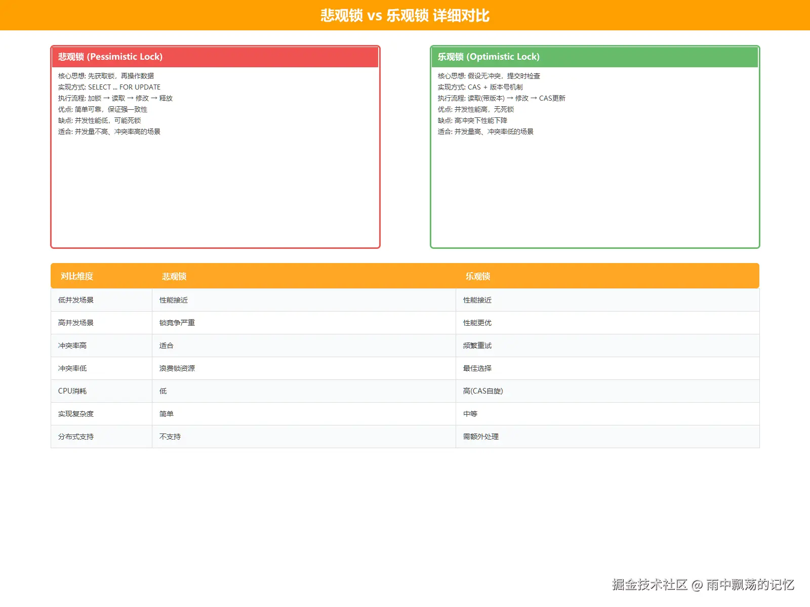 | 分布式系统 | Redis分布式锁 | 跨节点互斥,可靠性高 |