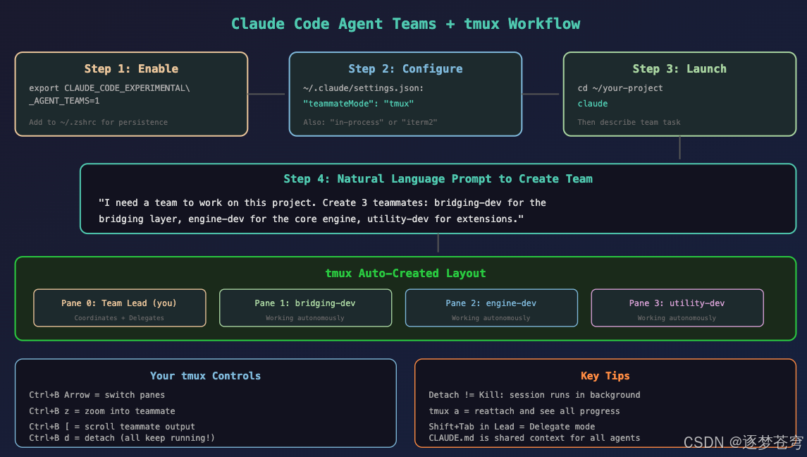 tmux 是使用 Claude Code Agent Teams 的最佳拍档。让我们回顾核心要点: