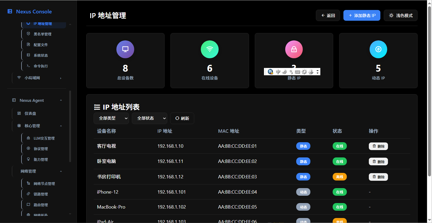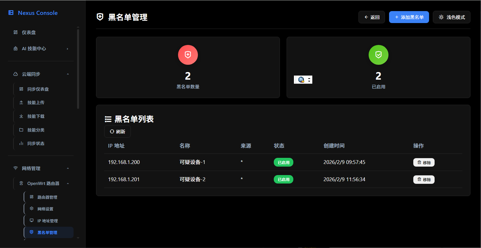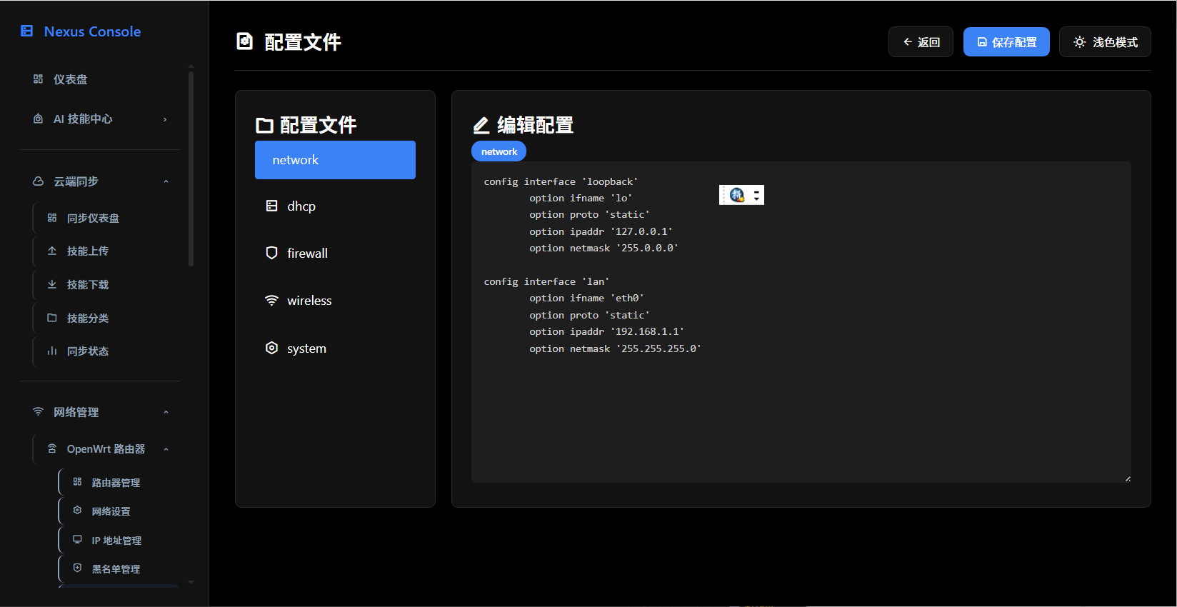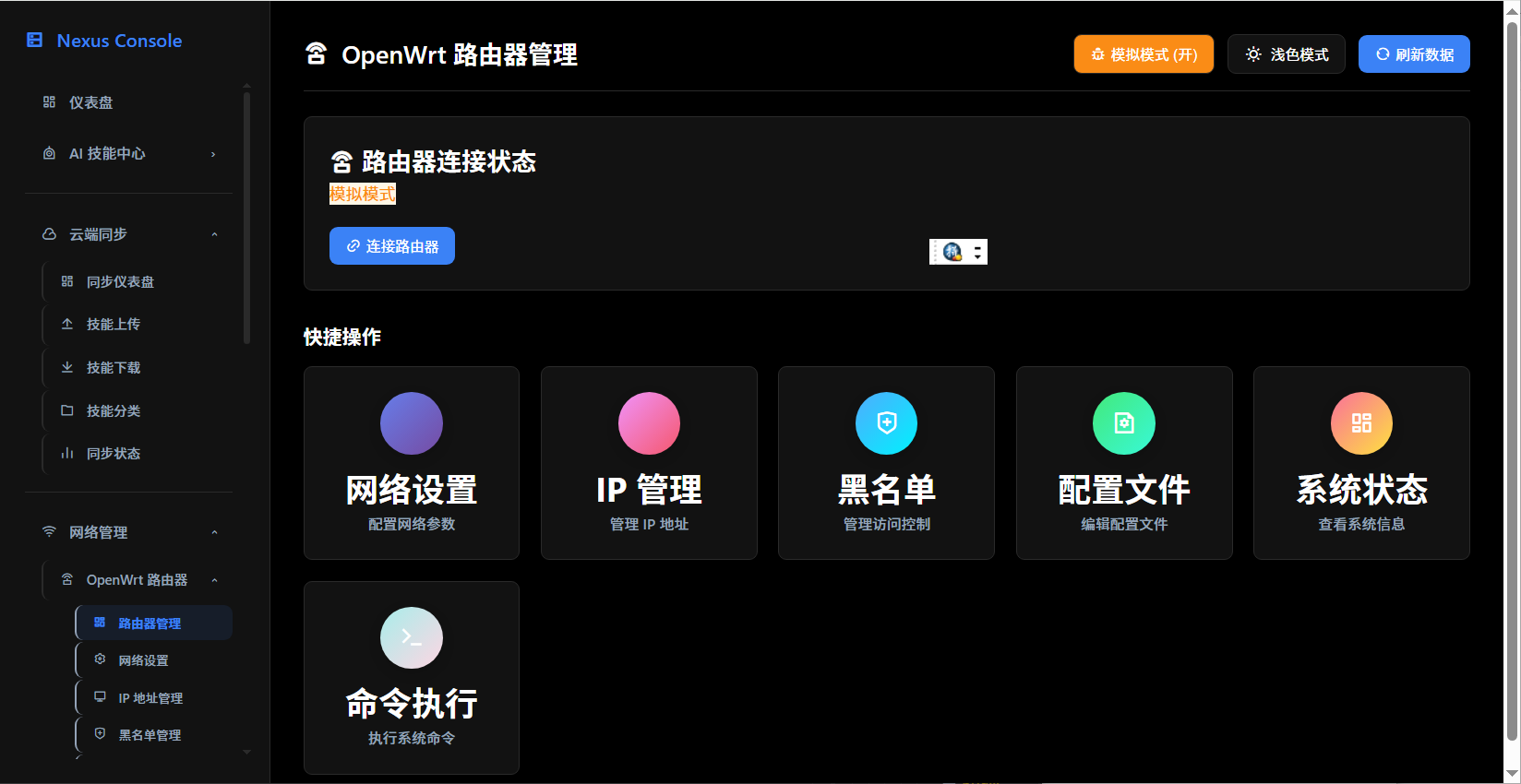 SSH 连接管理、配置文件读写、IP 地址/黑名单管控、系统操作执行等核心功能,均已实现"模拟逻辑→实际落地→压力测试"的全流程验证,而非停留在文档描述。以 SSH 连接管理为例,经过模拟各种复杂网络环境下的逻辑测试,再在实际设备上进行落地验证,最后通过压力测试确保在高并发、高负载情况下仍能稳定运行。批量操作、版本适配、缓存优化等增强功能,均基于生产级场景设计,可直接复用至分布式应用、边缘计算、智能家居等各类场景。例如,在智能家居场景中,通过批量操作功能可以同时对多个智能设备进行配置和管理,提高效率;版本适配功能可以确保在不同版本的 OpenWrt 系统上都能正常运行;缓存优化功能则可以提升数据处理速度,为用户提供更流畅的体验。