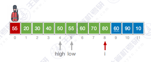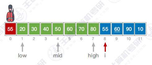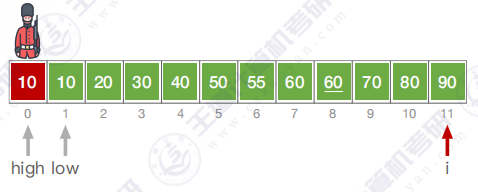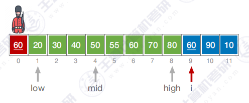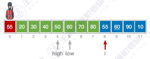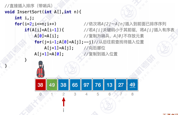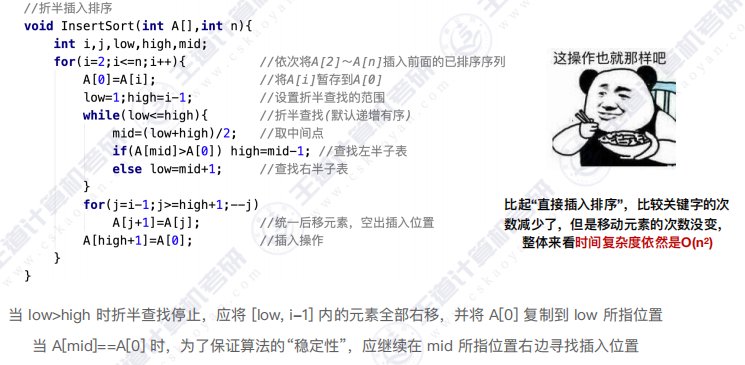 当low>high时折半查找停止,应将[low,i-1]内的元素全部右移,并将A[0]复制到low 所指位置