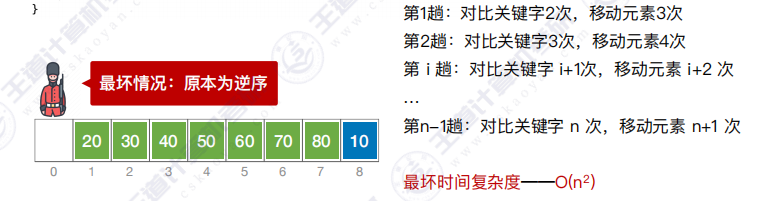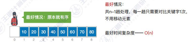 - 第三趟:整个表已呈现出"基本有序",对整体再进行一次"直接插入排序"