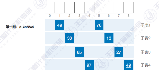 - 给定数组 :[49, 38, 65, 97, 76, 13, 27, 49]