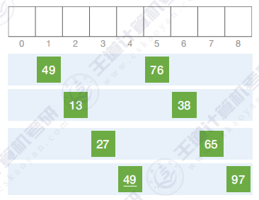 - 第二趟结果 :[38, 49, 65, 97, 76, 13, 27, 49]