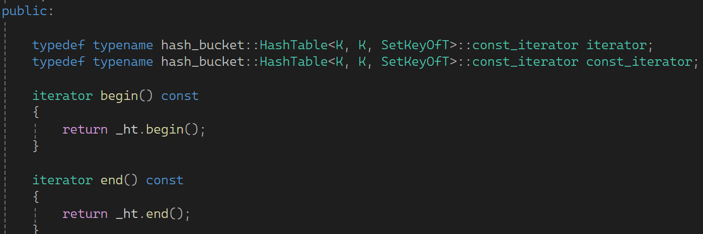 typedef typename hash_bucket::HashTable<K, K, SetKeyOfT>::const_iterator iterator;