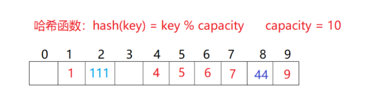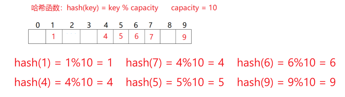 空间大小是10,来了一堆值映射到这些位置。在看下图: