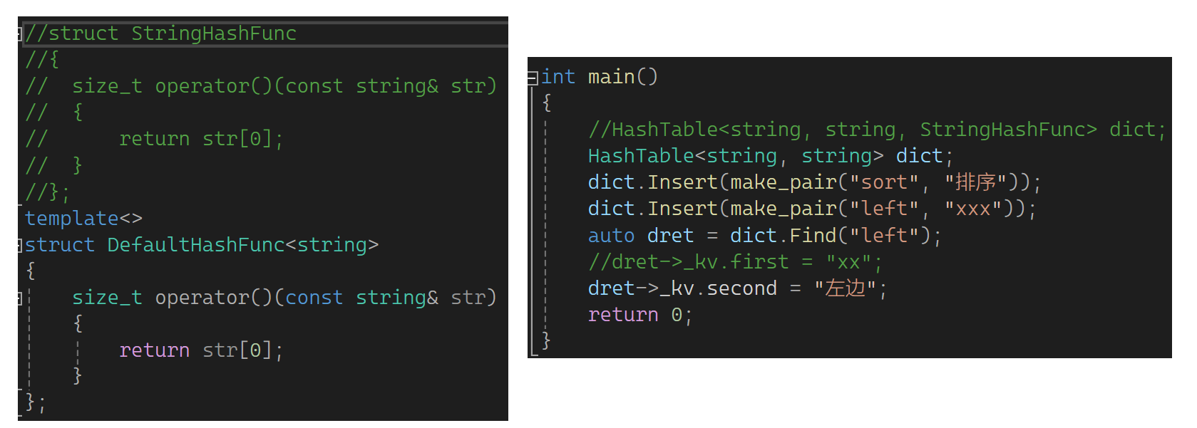 还有像string这样的类型也要解决,可以把前面写的DefaultHashFunc写到全局,这样大家都可以用,然后再改一下(所有取模的地方用仿函数转化一下):