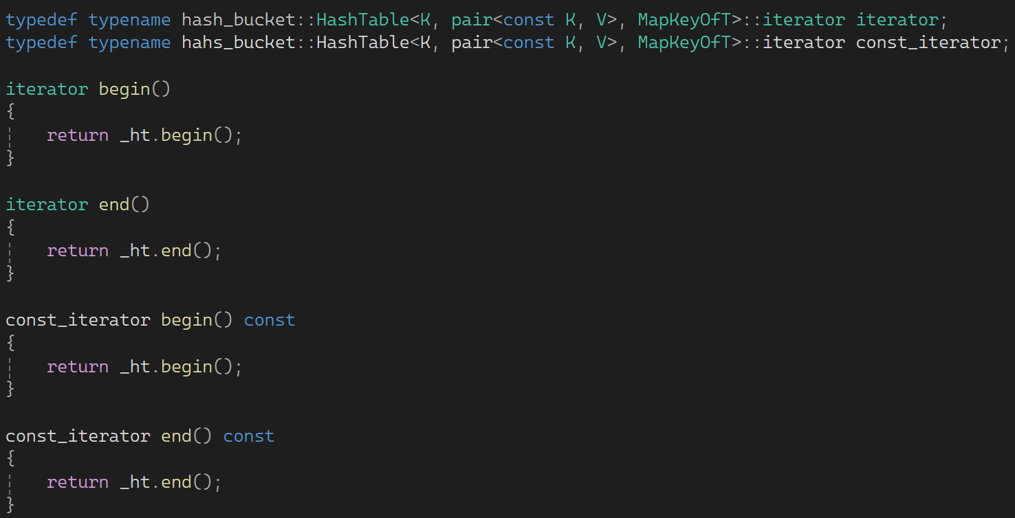 typedef typename hash_bucket::HashTable<K, pair<const K, V>, MapKeyOfT>::iterator iterator;