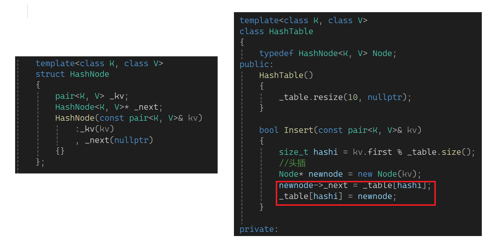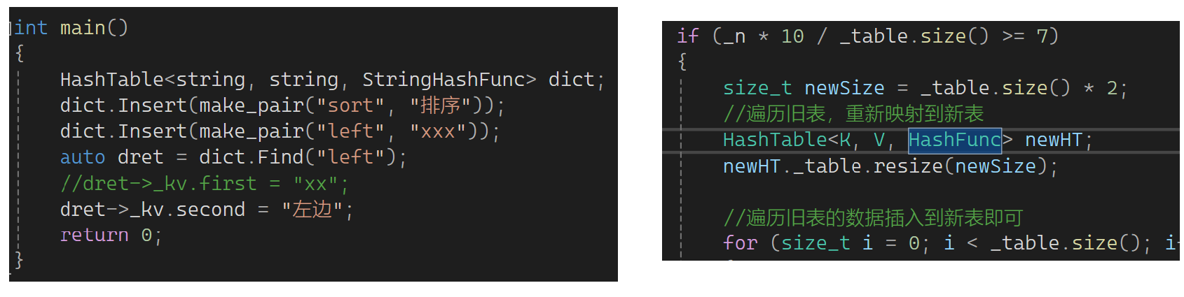 那怎么解决呢?我不定义一个vector的newtable,而是定义一个哈希表的newHT,newHT里面有一个vector,把这个vector resize一下: