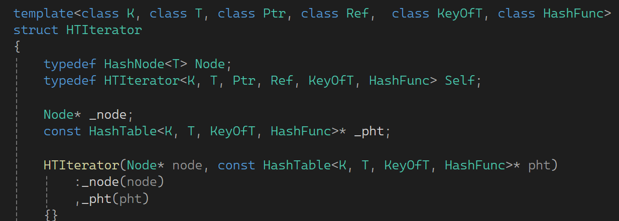 typedef HTIterator<K, T, Ptr, Ref, KeyOfT, HashFunc> Self;