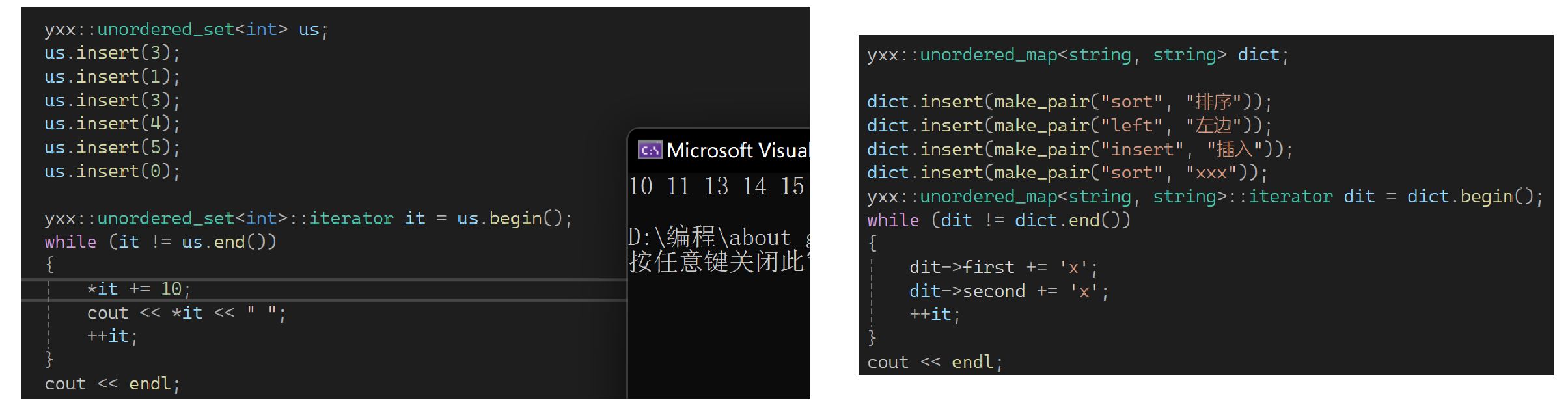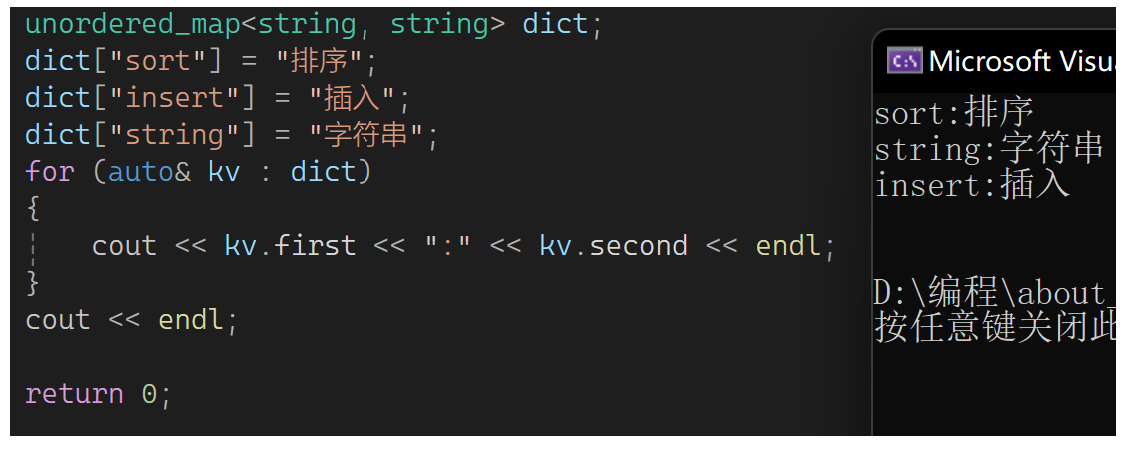 它只能去重,不能排序,它也是有multi版本的。再演示一下unorder_map: