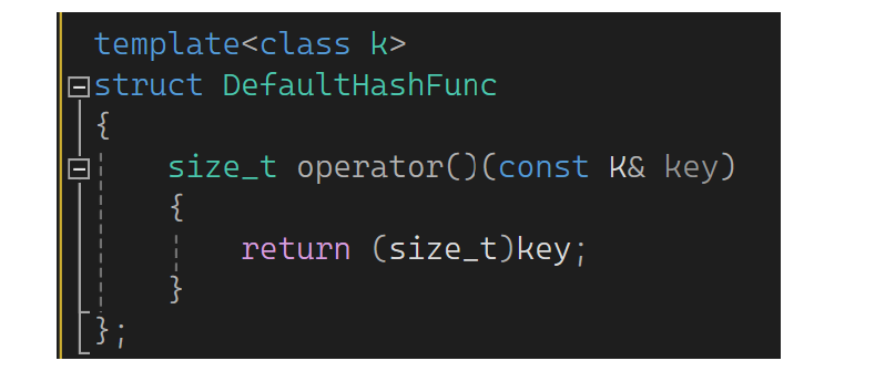 template<class K, class T, class KeyOfT, class HashFunc = DefaultHashFunc<K>>