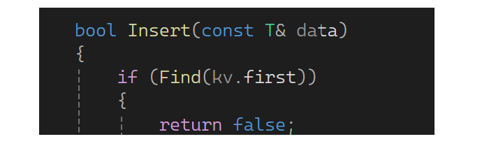 实现完find后再补充一下Insert,如果值已经有了就别插入了,返回false(同时补充之前的insert):