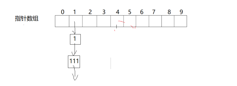 下面再来说一个方法,能不能不要说你的空间被占了就去占别人的空间,想个办法别互相影响,于是有人提出了拉链法,也叫哈希桶。它是把数组弄成指针数组,数组中不存值了,位置冲突了内部消化。如下图: