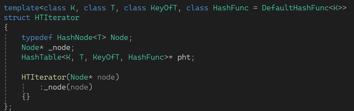 HTIterator(Node* node, const HashTable<K, T, KeyOfT, HashFunc>* pht)
