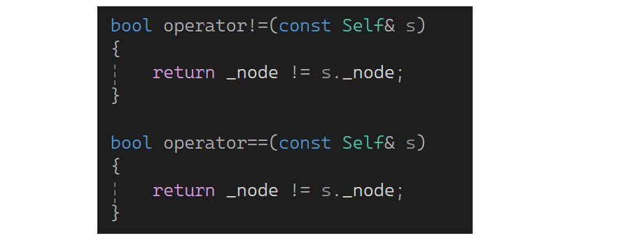 bool operator!=(const Self& s)