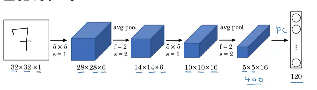 过滤器尺寸固定为5×5,通道数从6提升到16,符合"浅层少通道 、深层多通道"的设计逻辑,逐步提取更复杂的特征;