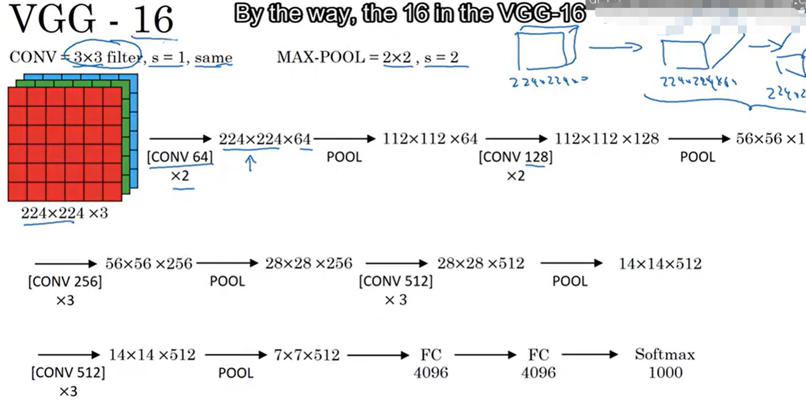 第一卷积块(Conv1-1、Conv1-2):2个3×3卷积核,过滤器层数=64(每层都是64,通道数不变),步幅=1,填充=1(Same Padding),输出尺寸=224,最终输出224×224×64;