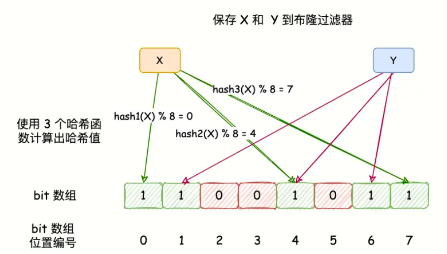 - 查询元素 :同样使用这 个哈希函数计算位置。如果所有对应位都是 1,则认为元素可能存在 ;只要有一位是 0,则该元素一定不存在 。