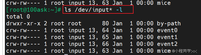 可以通过以下命令查看当前系统中已经创建的输入设备节点: