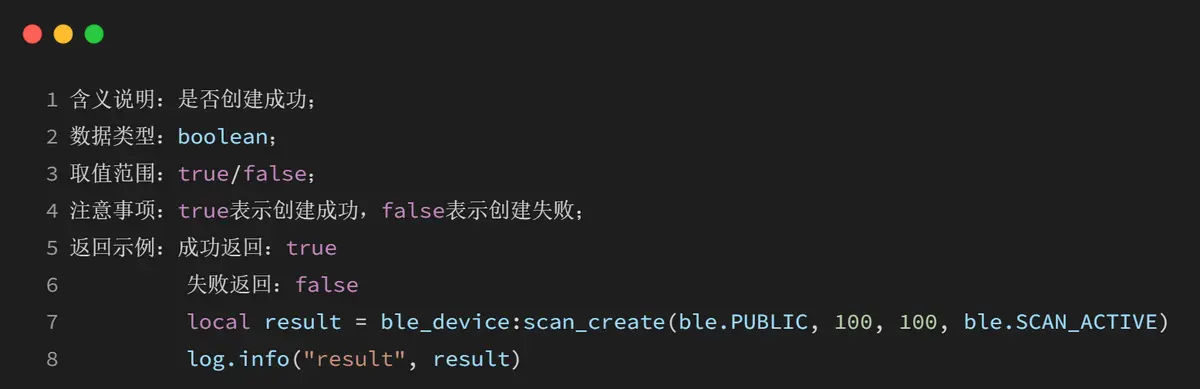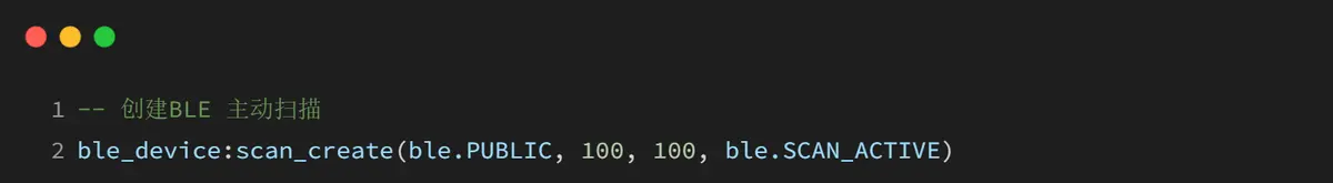 4.3 ble_device:scan_create(addr_mode,scan_interval,scan_window,scan_type)