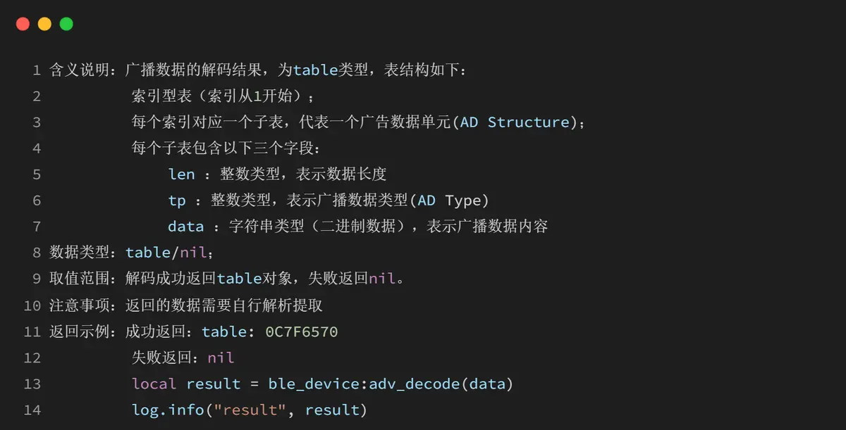 广播数据通常来自于 ble.EVENT_SCAN_REPORT 事件的 ble_param.data
